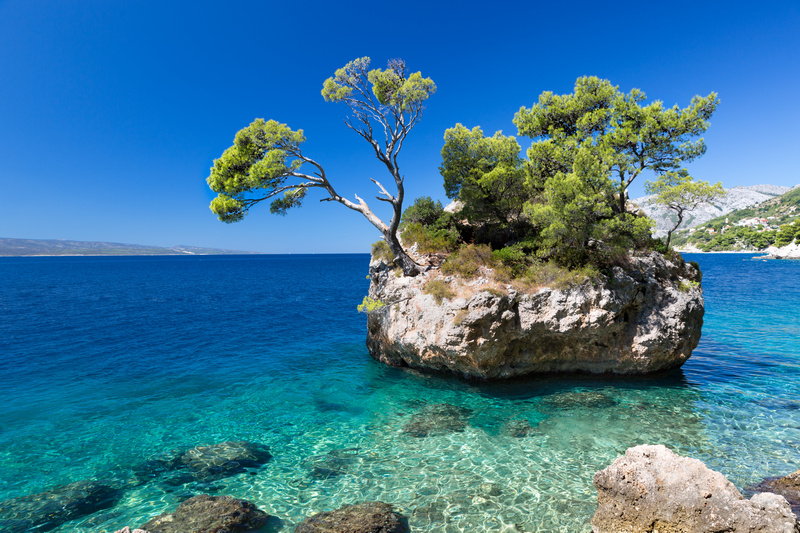 Kamen Brela, niewielka skała wyrastająca z morza tuż przy plaży Punta Rata, stanowi symbol całej Riwiery Makarskiej. Porośnięta charakterystycznymi sosnami wygląda jak wyrwana z pocztówki i jest jednym z najczęściej fotografowanych miejsc w Chorwacji. Koniecznie zobacz ją o wschodzie lub zachodzie słońca, kiedy złote światło miękko opada na drzewa i skałę, a Adriatyk mieni się pastelowymi odcieniami błękitu i różu.