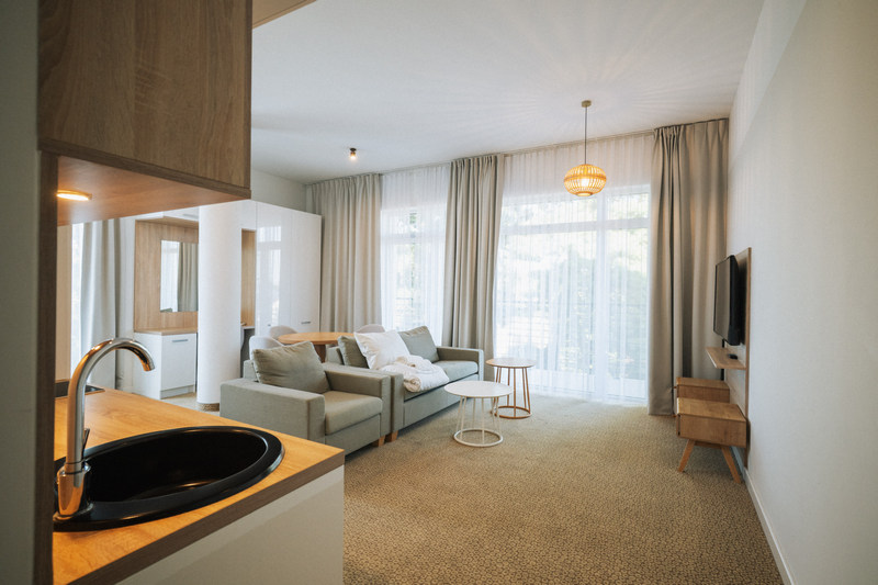 Zastanawiasz się, czym właściwie jest aparthotel? To idealne połączenie swobody, jaką daje własny apartament, z wygodą hotelowych udogodnień. Apartamenty są znacznie przestronniejsze niż standardowe pokoje, a dzięki w pełni wyposażonemu aneksowi kuchennemu zyskujesz niezależność. Jednocześnie, jako gość Molo Park Aparthotel, masz do dyspozycji recepcję, serwis sprzątający oraz dostęp do strefy wellness, restauracji i baru.