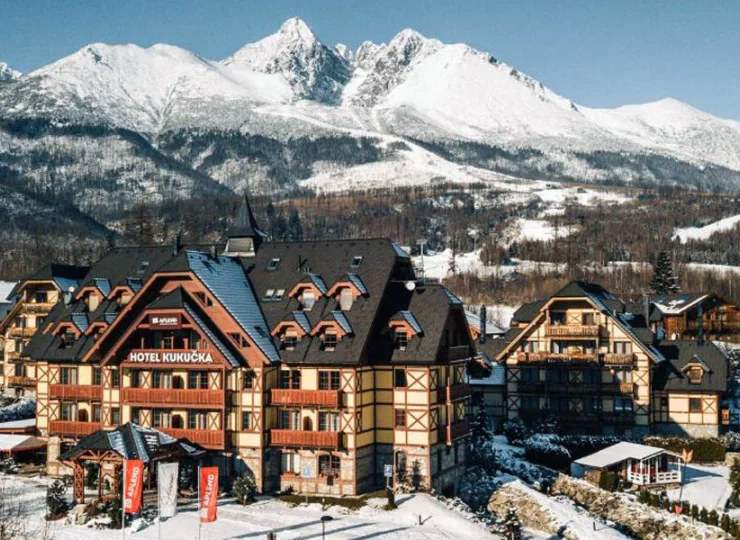 Aplend Hotel Kukučka **** zachwyca gości niepowtarzalnym designem opartym na drewnianych i kamiennych elementach uzupełnionych ziemistymi kolorami. Świetnie dopasowany do górskiej okolicy wystrój idealnie łączy się ze spektakularnym wysokogórskim widokiem na Łomnicę – drugi najwyższy szczyt Tatr.