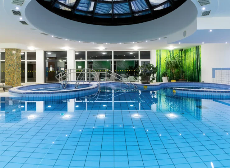 Hotelowa strefa wellness z taflą wody o powierzchni blisko 100 m² zaspokoi potrzeby osób w każdym wieku. Baseny z wodą termalną oferują ukojenie i orzeźwienie osobom starszym, a także rodzinom z dziećmi, na które czeka niezapomniana zabawa. Dorośli mogą odprężać się w saunie, podczas masażu, relaksować mięśnie w ciepłej wodzie lub opalać się na tarasie słonecznym.