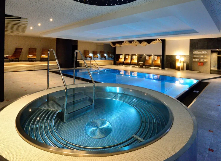 • Kryty basen z przeciwprądem, jacuzzi, sauna fińska, łaźnia parowa, odpoczywalnia