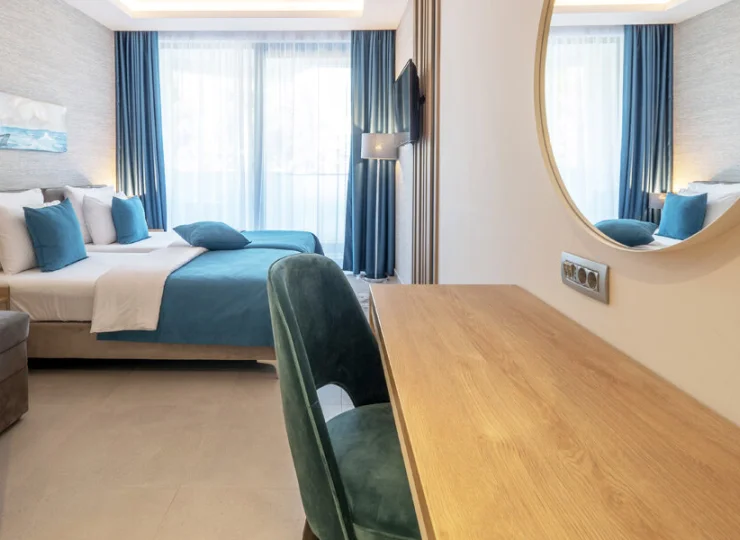 4-gwiazdkowy hotel Montenegro oferuje przyjemnie urządzone i komfortowe pokoje z klimatyzacją i łazienką. W każdym pokoju standard plus oraz superior obok 2-osobowego łóżka jest dodatkowo sofa, która może służyć za miejsce dziennego wypoczynku lub dostawkę dla trzeciej osoby. Pobyt dziecka do 12 lat na tej sofie jest bezpłatny! Pokoje standard mają balkon francuski, a pokoje superior własny balkon z widokiem na góry, park lub morze.